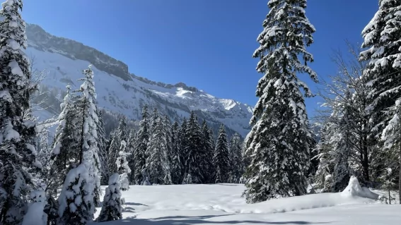Diese ideale Einsteiger-Tour führt dich durch die zauberhafte Winterlandschaft des Starzlachtals, am Fuße des markanten Hohen Ifens. Über funkelnde, schneebedeckte Wiesen und durch stille, verschneite Wälder wanderst du begleitet vom sanften Knirschen des Schnees unter deinen Füßen.
