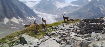 Nach mehreren Stunden auf dem Höhenweg erreichten wir das Waltenberger Haus. Die modernisierte Hütte lag spektakulär unterhalb des Bockkarkopfs. Bei Sonnenuntergang kamen eine Herde Steinböcke nahe der Hütte grasen, das abendliche Spektakel. Aber auch der Blick auf die heute Route des Tages– stolz und voller Ehrfurcht vor dieser einzigartigen Berglandschaft.