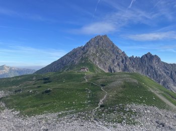 Am zweiten Tag stand uns die Königsetappe bevor. Noch vor Sonnenaufgang machten wir uns bereit, und schon bald führte uns der Weg auf schmalen Pfaden hinauf zum Stuiben, weiter zum Sedererstuiben und schließlich zum Buralpkopf. Die stetig wechselnden Eindrücke – von steilen Felsflanken bis hin zu blühenden Almwiesen – machten jede Stunde zu einem Erlebnis.