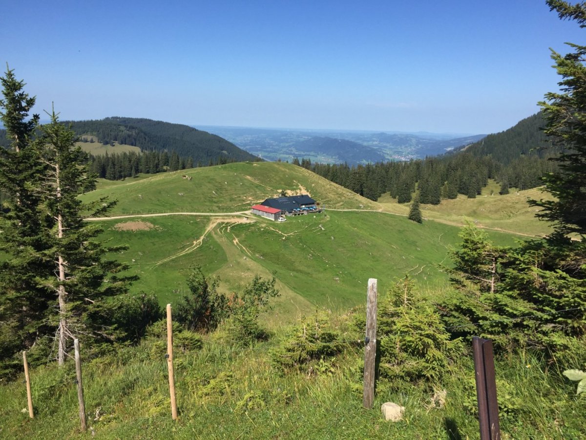 Unser Treffpunkt war in Immenstadt. Schon beim ersten Kennenlernen der Gruppe war die Atmosphäre herzlich – ein gutes Gefühl, wenn man weiß, dass man die kommenden Tage miteinander verbringt. Gemeinsam fuhren wir mit der Seilbahn hinauf zur Mittelstation Mittag. Bereits während der Auffahrt schwebte uns ein atemberaubendes Panorama entgegen: sanfte Wiesenhänge, dicht bewaldete Täler und darüber die ersten Gipfel der Nagelfluhkette.