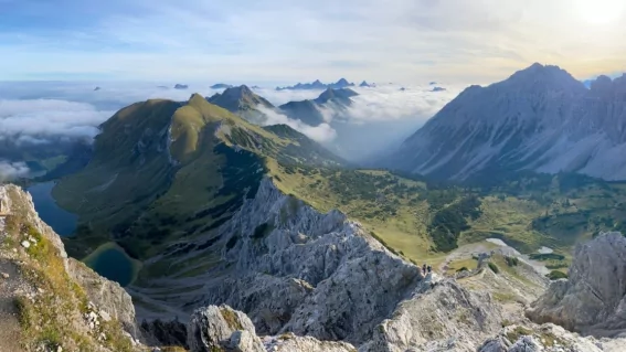 Gut erholt starteten wir in die nächste Etappe. Der Weg führte über aussichtsreiche Höhen und vorbei an schroffen Felsen. Immer wieder hielten wir an, um die weite Bergwelt zu genießen. Besonders der Blick hinunter ins Tal und hinüber zu den umliegenden Gipfeln war atemberaubend. Am idyllischen Funtensee erreichten wir das Kärlinger Haus, wo wir den Abend bei angeregten Gesprächen verbrachten. Wir waren schon am frühen Nachmittag an der Hütte, so konnten wir den nahegelegenen Feldkogel besteigen und einmal um den Funtensee wandern.